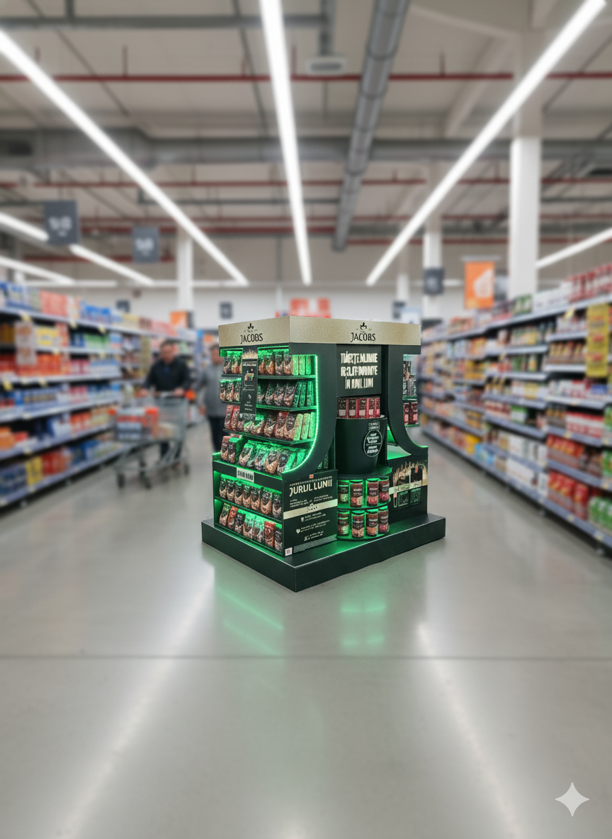 Soluțiile noastre de expunere POSM acoperă patru domenii principale: standuri din HDF, standuri metal, standuri carton, precum și display-uri de tejghea pentru produse mici. Fiecare categorie de expunere oferă avantaje distincte și o versatilitate remarcabilă, asigurând prezentarea optimă a produselor în orice context publicitar. De la structuri complexe, standuri modulare până la display-uri promoționale ușoare și economice, aceste soluții de comunicare retail se remarcă prin durabilitate, personalizare și ușurință în asamblare. Orice display personalizat se adaptează brandului atât pe termen scurt, cât și pentru expuneri permanente.